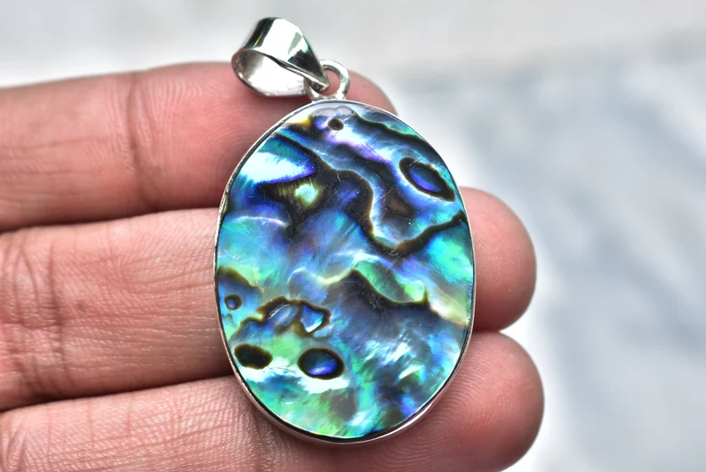 Abalone Shell Cabochon / Stamped 925 Sterling Silver Pendant / For Jewelry / Oval Shape / Loose Gemstone Jewelry P-128