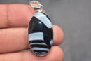 Black Banded Agate Cabochon / Plated Silver Pendant / For Jewelry / Oval Shape / Loose Gemstone Jewelrys A-286