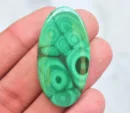 This listing features a high-quality, natural malachite cabochon in an oval shape, measuring 42x22x5 mm and weighing 61.85 carats. The gemstone is polished and presented as a loose stone, making it suitable for jewelry making or collection purposes. The item is offered by GemstoneHut, a Jaipur-based shop specializing in semi-precious gemstones.