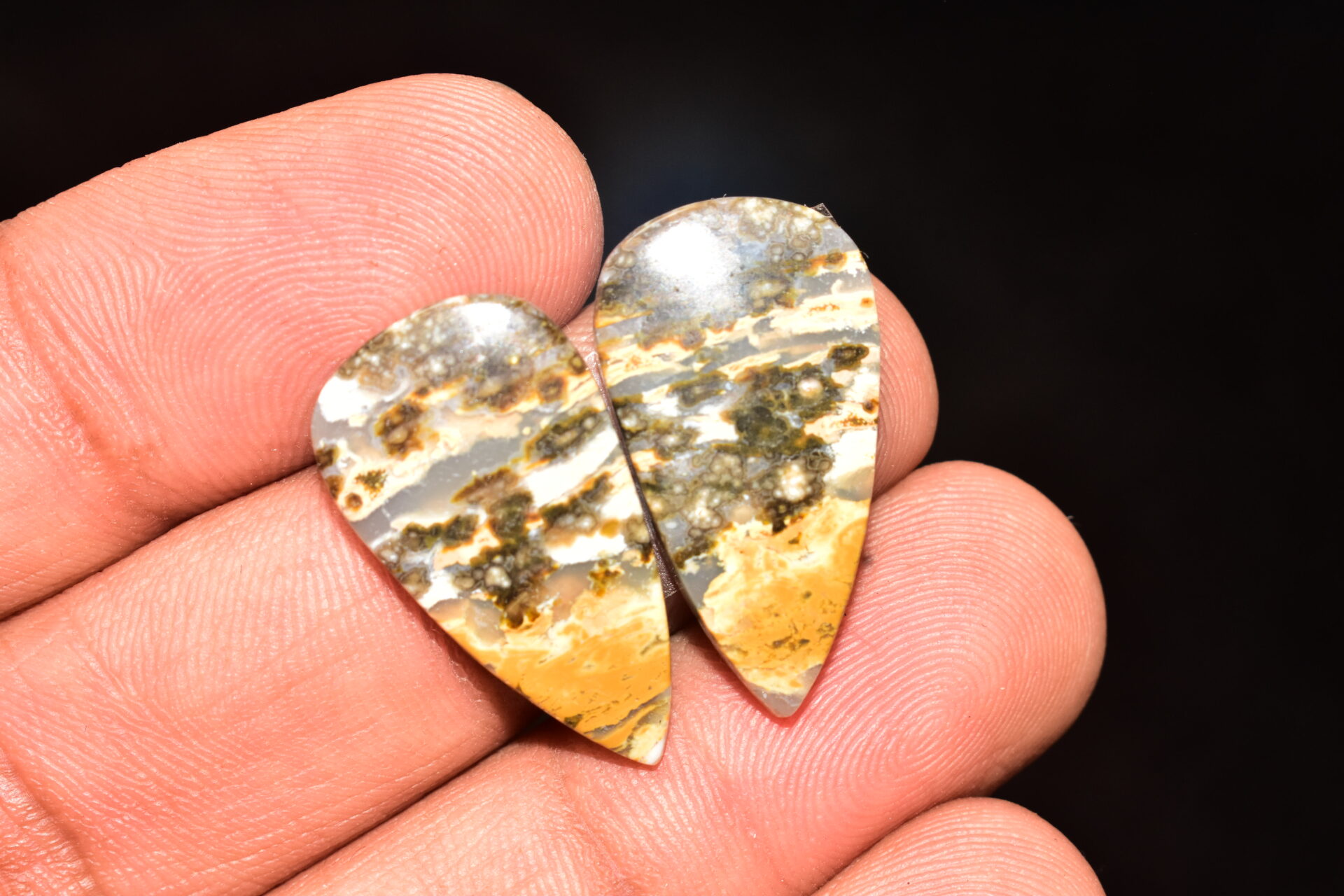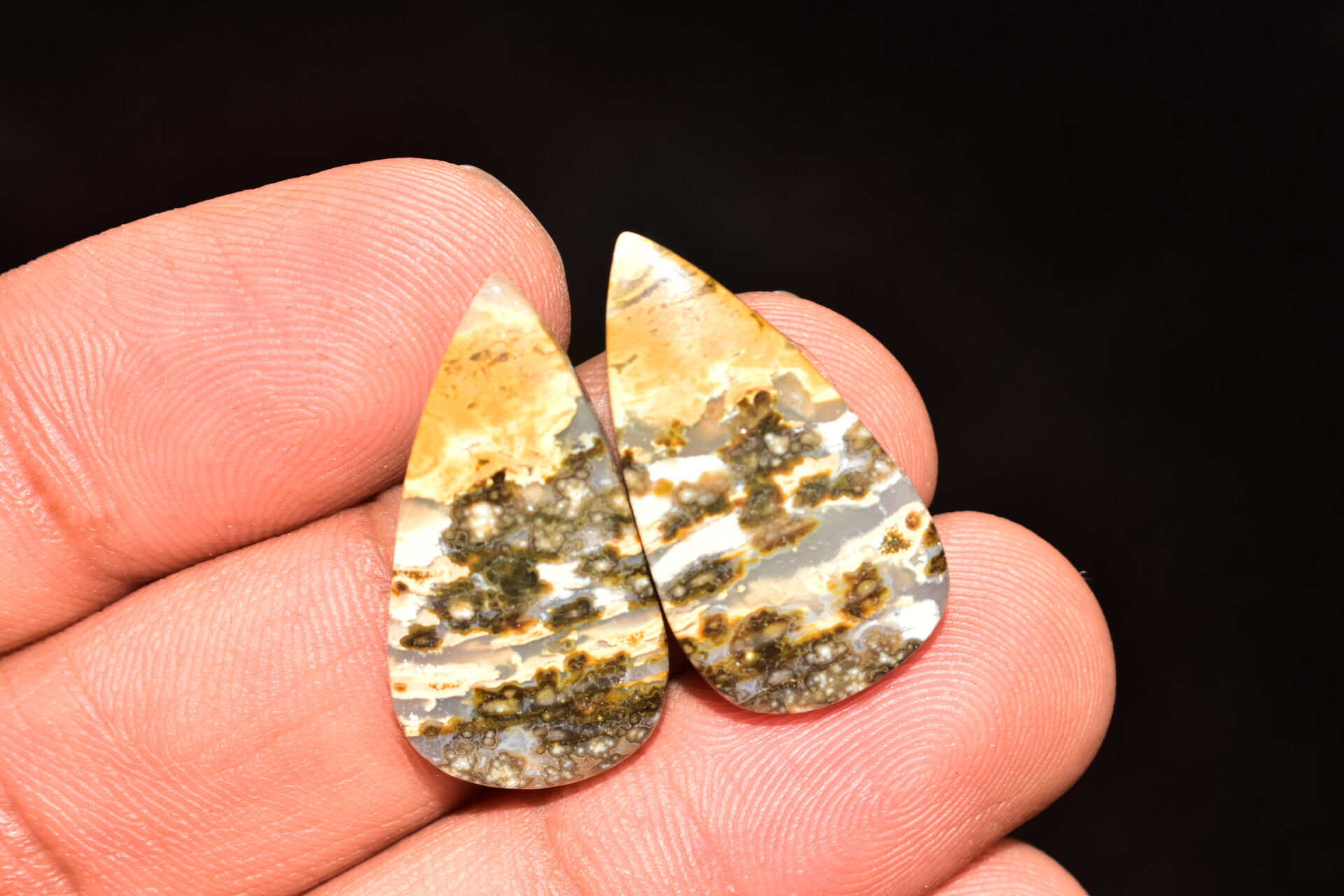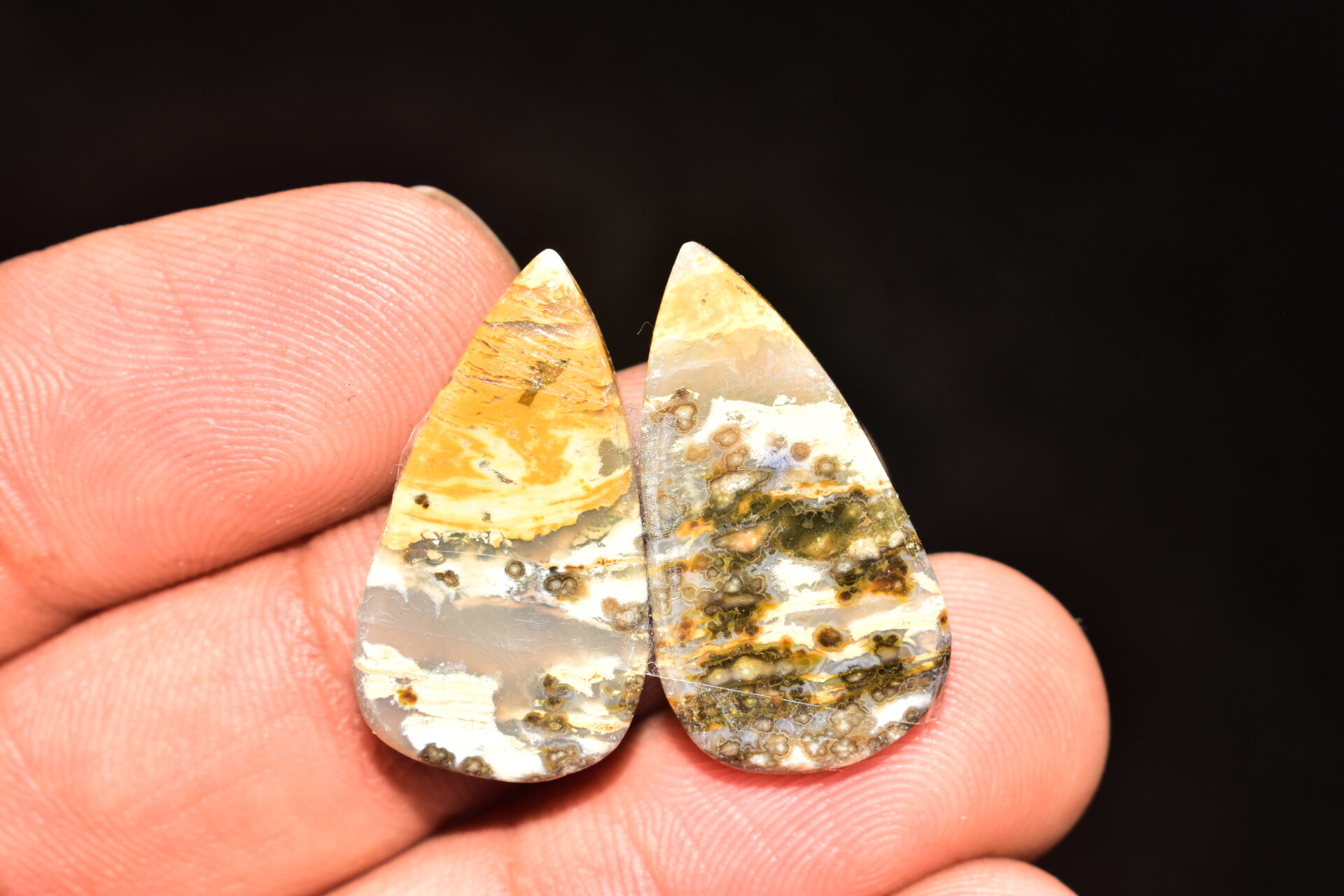 Ocean Jasper Pair Cabochon / Top Quality Ocean Jasper Pair Gemstone / Pear Shape / 21.95 Ct. / 26x14x4 mm. Loose Gemstone / Q-970