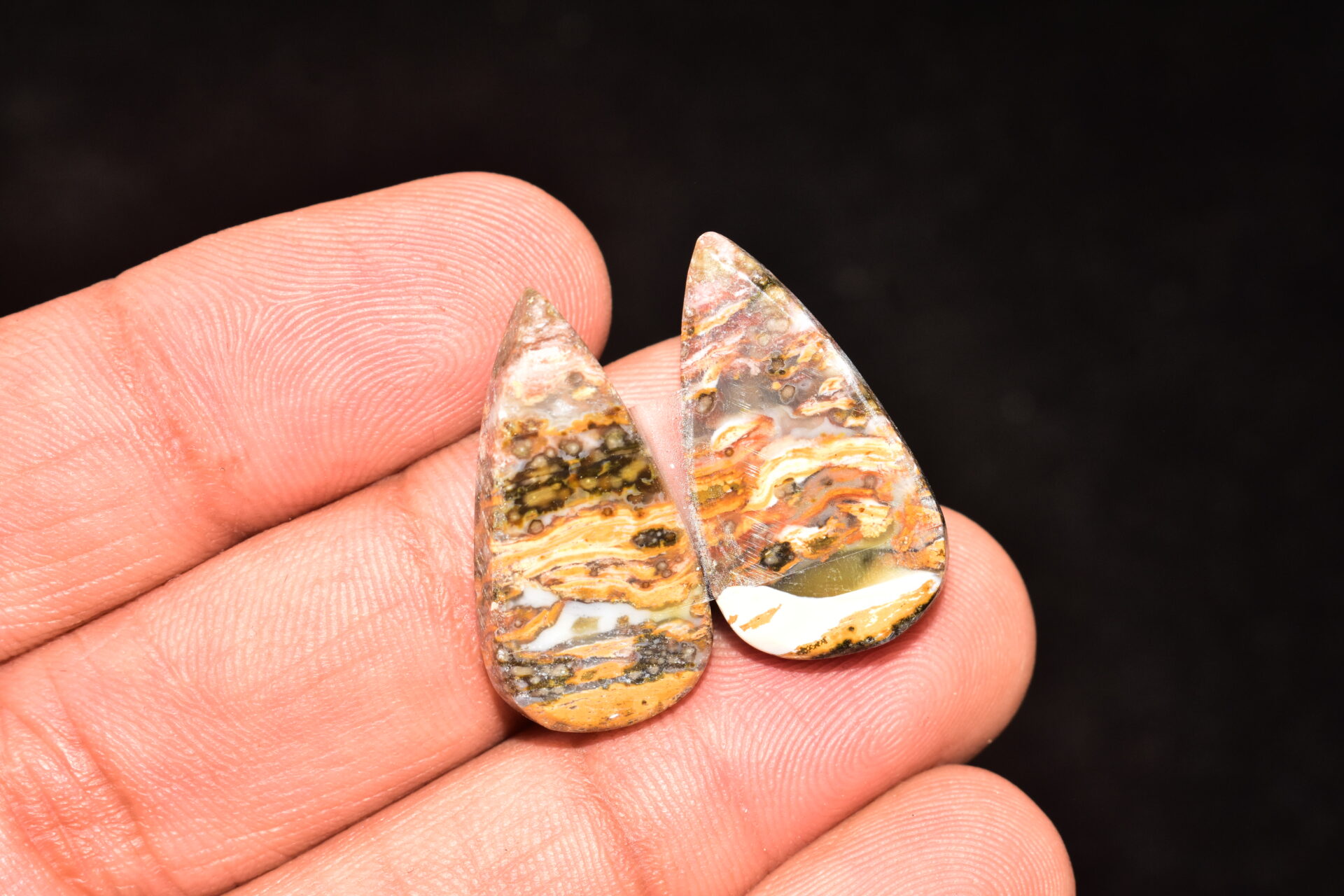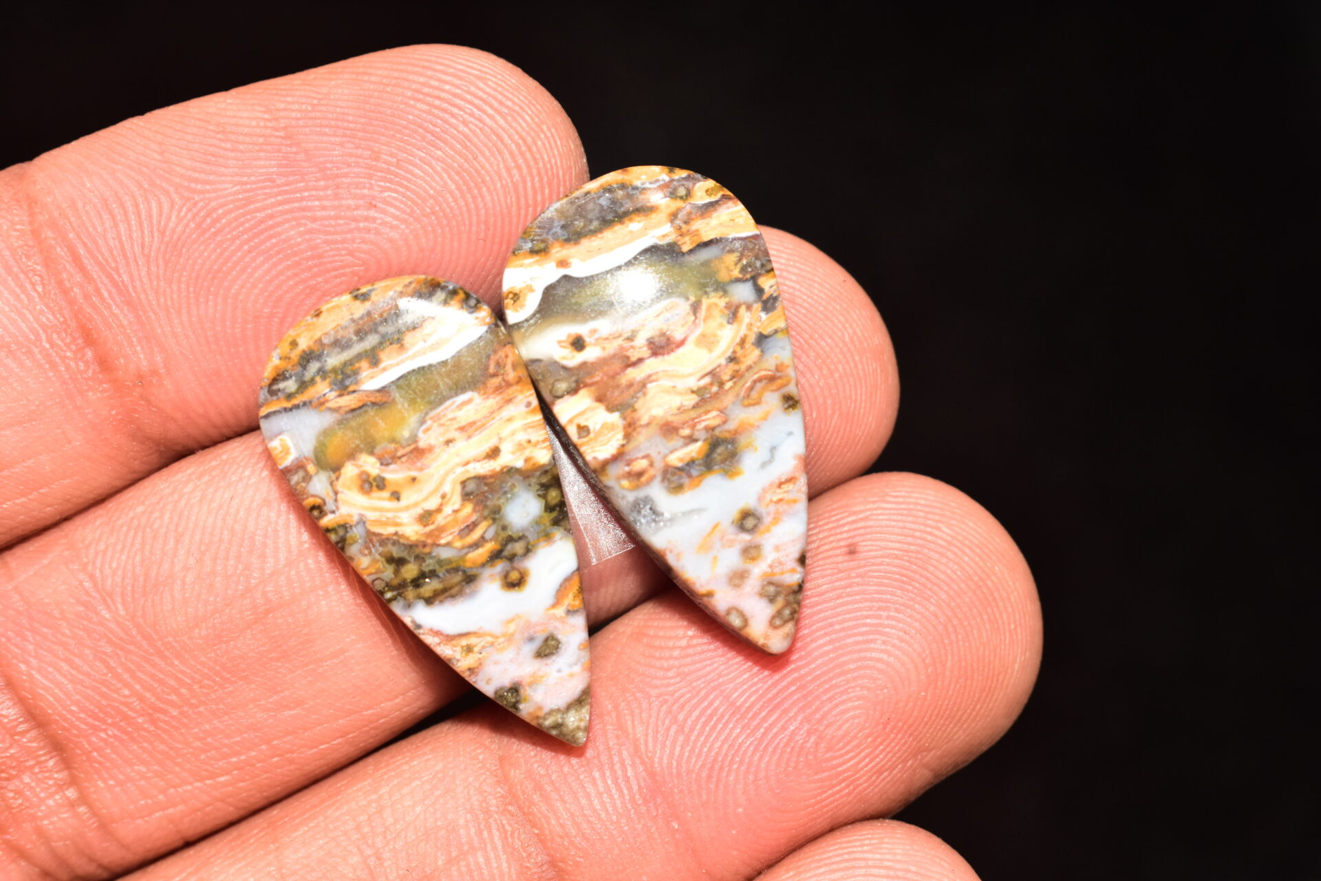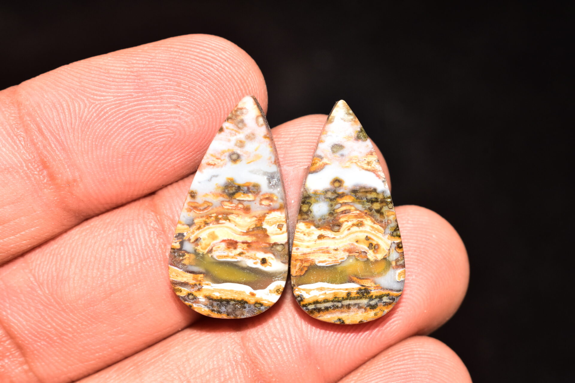 Ocean Jasper Pair Cabochon / Top Quality Ocean Jasper Pair Gemstone / Pear Shape / 21.95 Ct. / 26x14x4 mm. Loose Gemstone / Q-970
