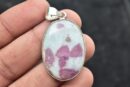 This listing features a natural pink tourmaline cabochon set in a stamped 925 sterling silver pendant. The gemstone is presented in an oval shape, making it suitable for jewelry making or collection purposes. The item is offered by GemstoneHut, a Jaipur-based shop specializing in semi-precious gemstones.