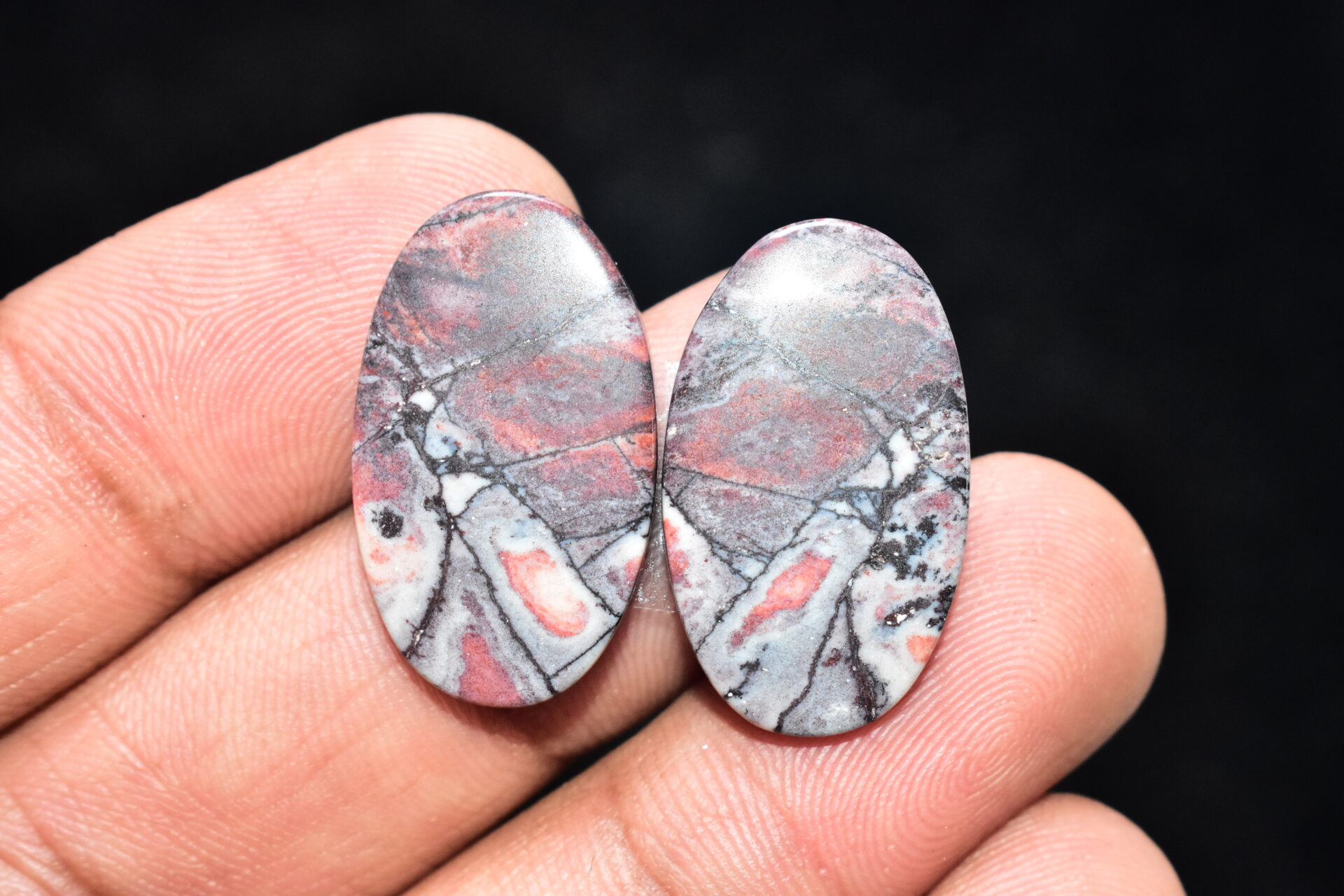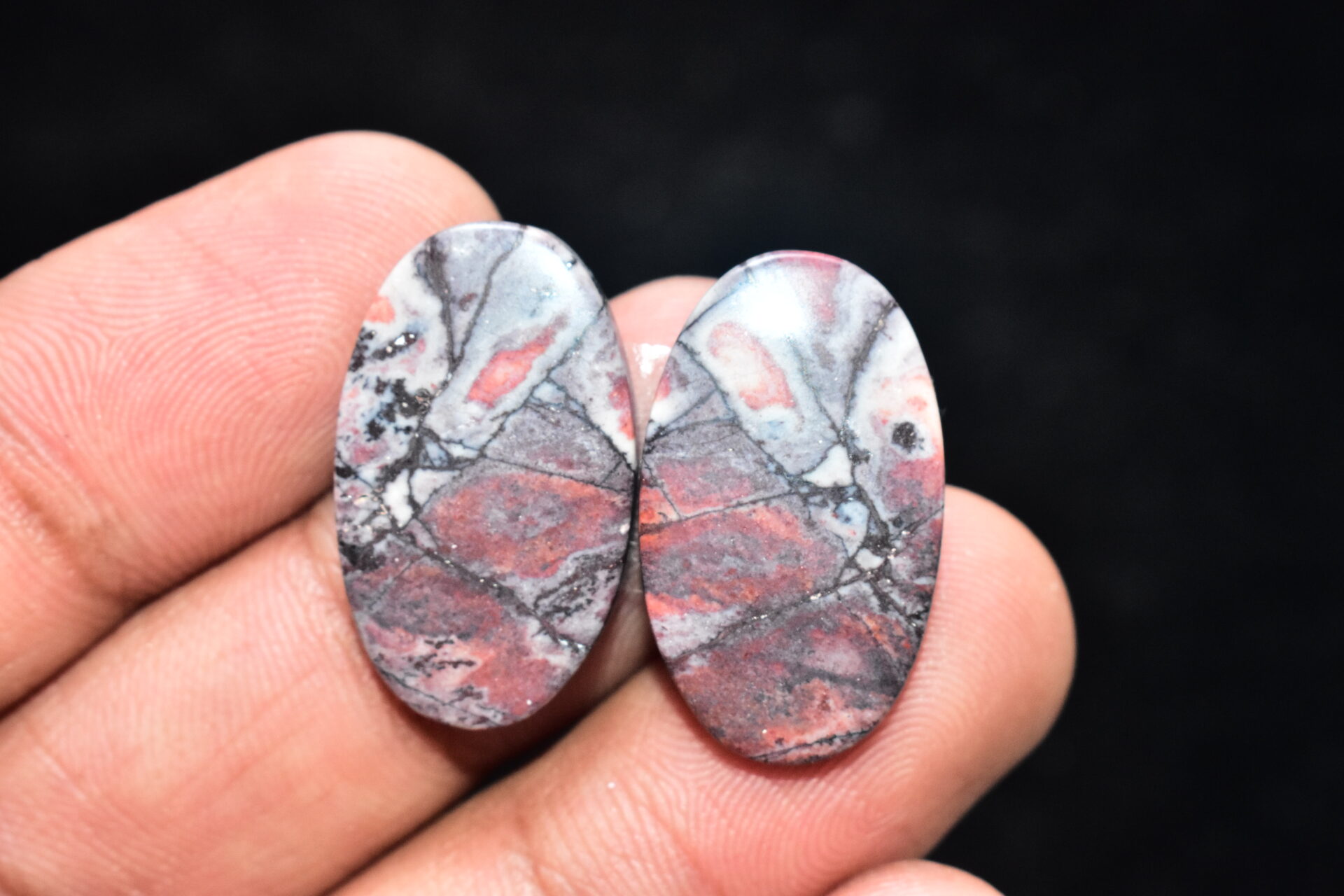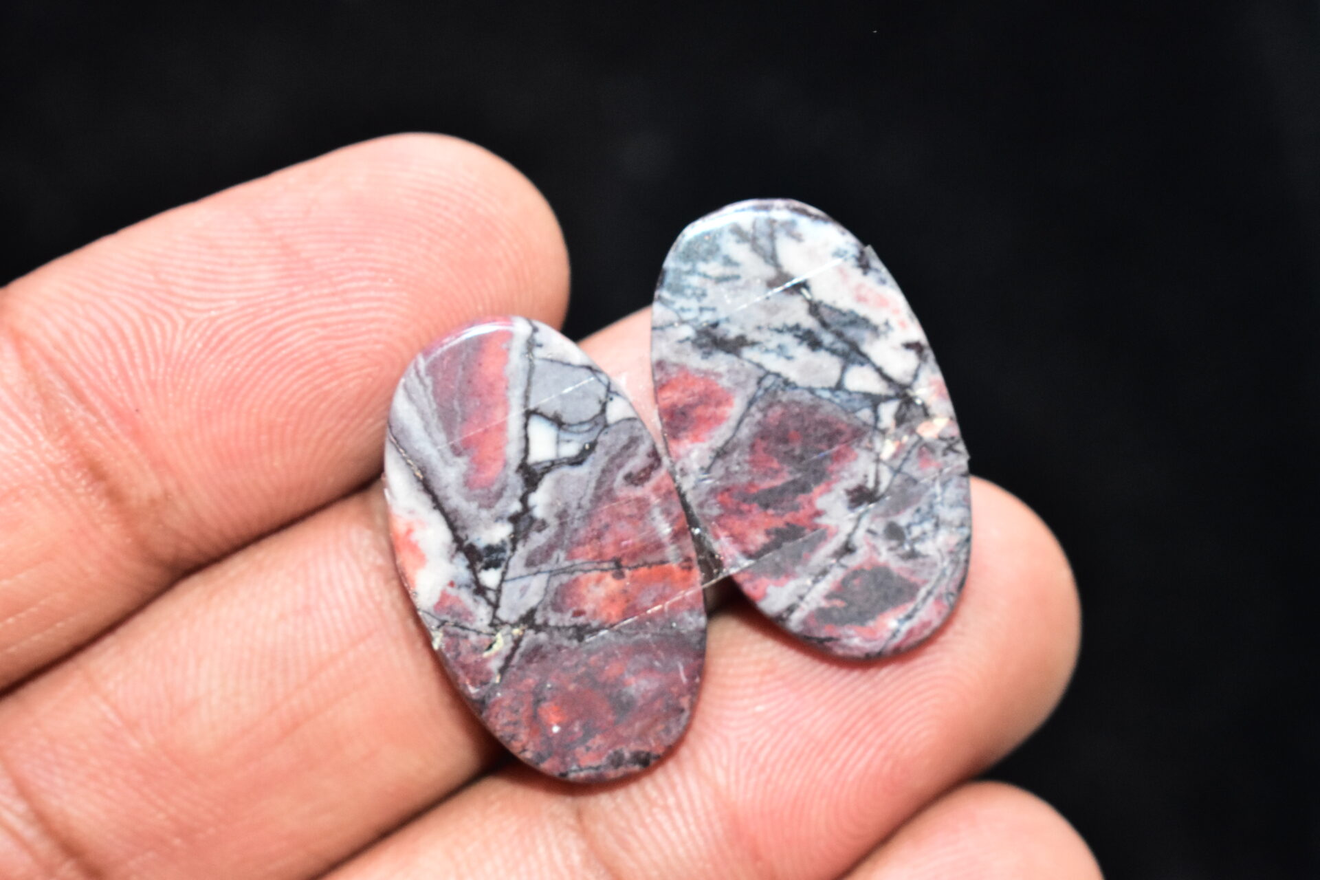 Porcelain Jasper Pair Cabochon / Porcelain Jasper Pair Gemstone / Exotica Jasper Pair / Oval Shape / 25.60 Ct. / 25x15x4 mm. / Q-824