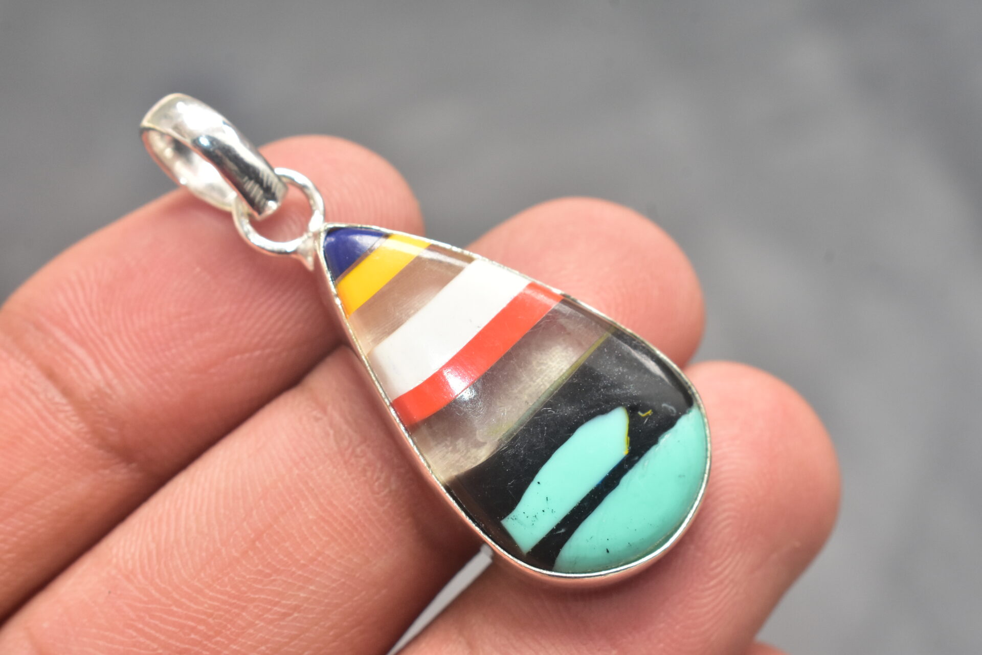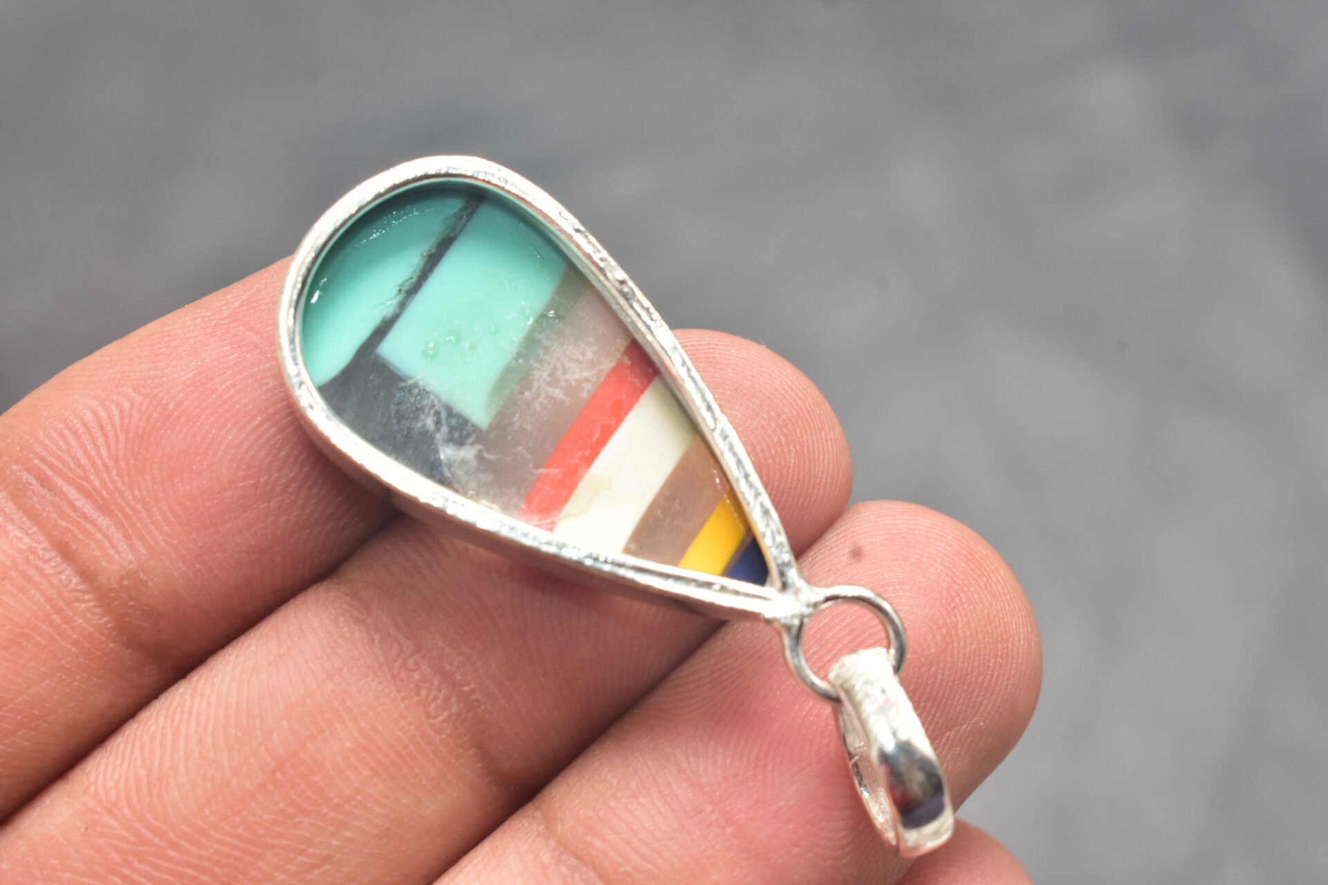 Surfite Cabochon / Plated Silver Pendant / For Jewelry / Pear Shape / Loose Gemstone Jewelrys A-268