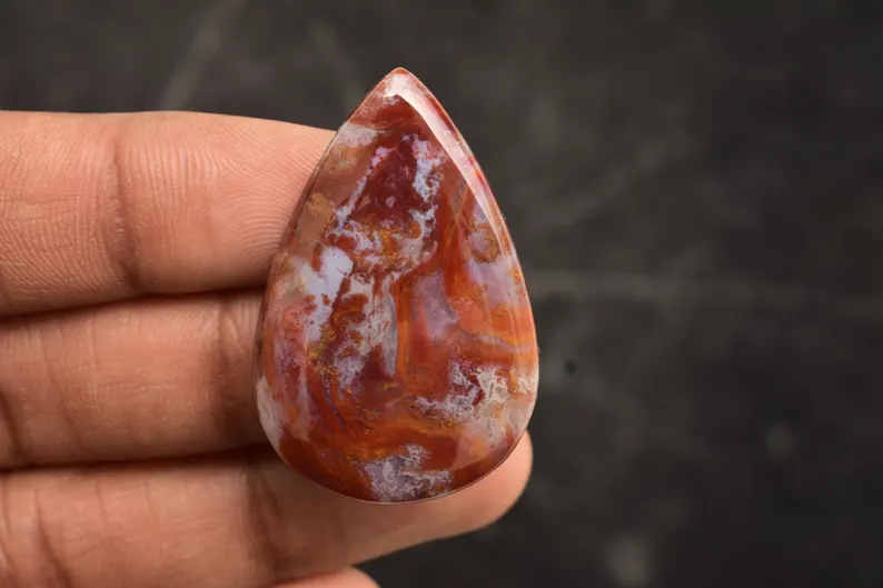 Title: Seam Agate Cabochon / Moroccan Seam Agate Gemstone / Moroccan Agate / For Jewelry / Pear Shape / 45.00 Ct / 40×25×6 mm / Loose Gemstone / Q-158