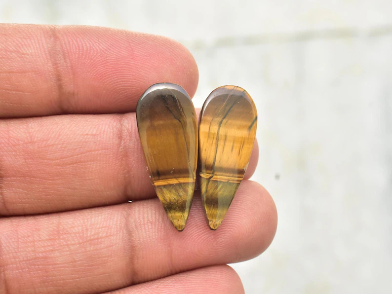 Title: Tiger Eye Pair Cabochon / Tiger Eye Pair Gemstone / Oval Shape / 25.00 Ct. / 25×13×4 mm. / Loose Gemstone / Q‑172