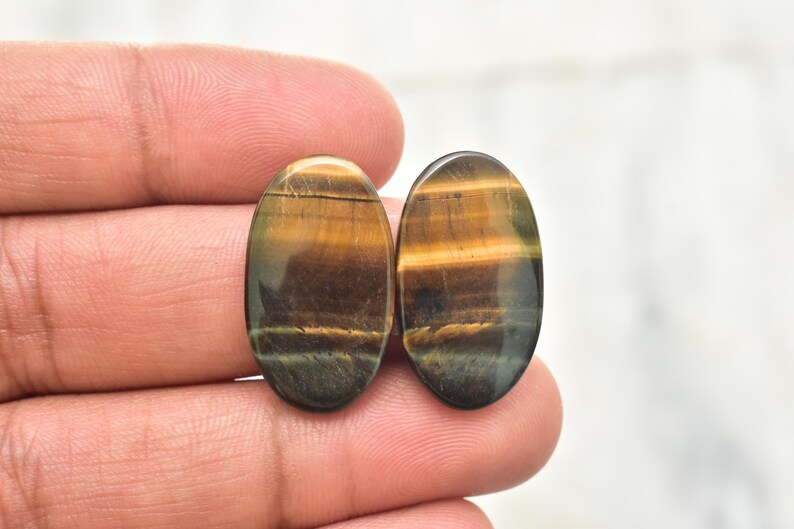 Title: Tiger Eye Pair Cabochon / Tiger Eye Pair Gemstone / Oval Shape / 26.65 Ct. / 26×15×4 mm. / Loose Gemstone / Q‑181