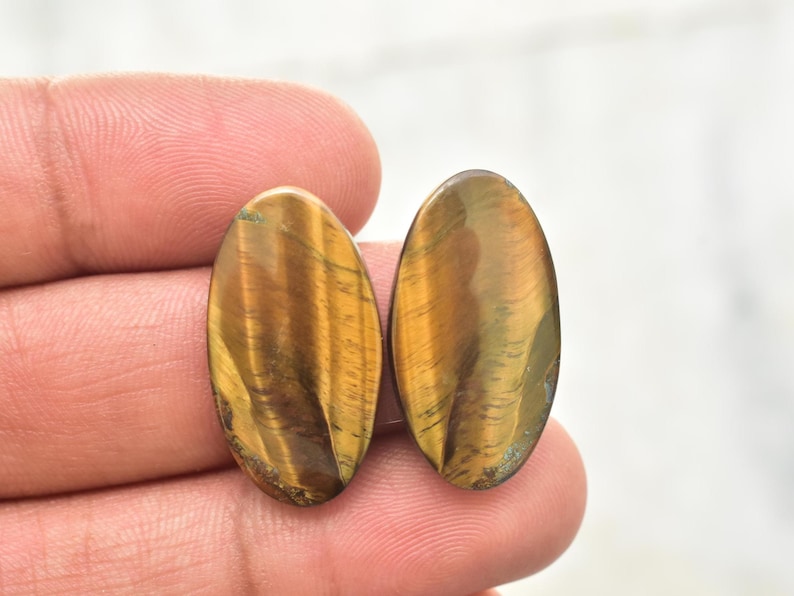 Title: Tiger Eye Pair Cabochon / Tiger Eye Pair Gemstone / Oval Shape / 26.95 Ct. / 27×14×4 mm. / Loose Gemstone / Q‑178