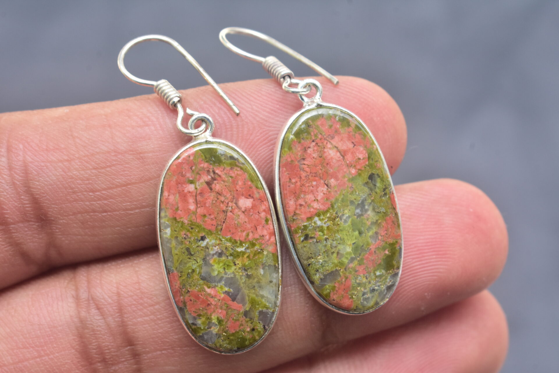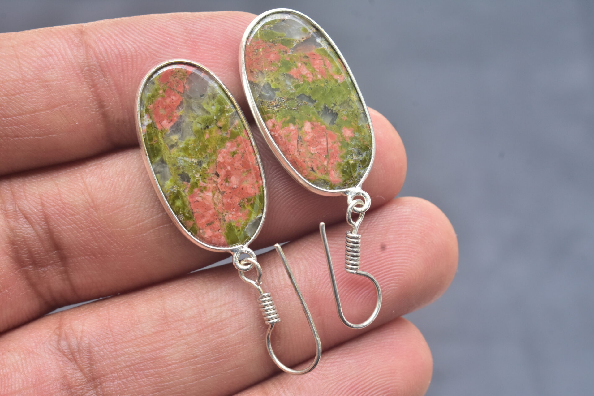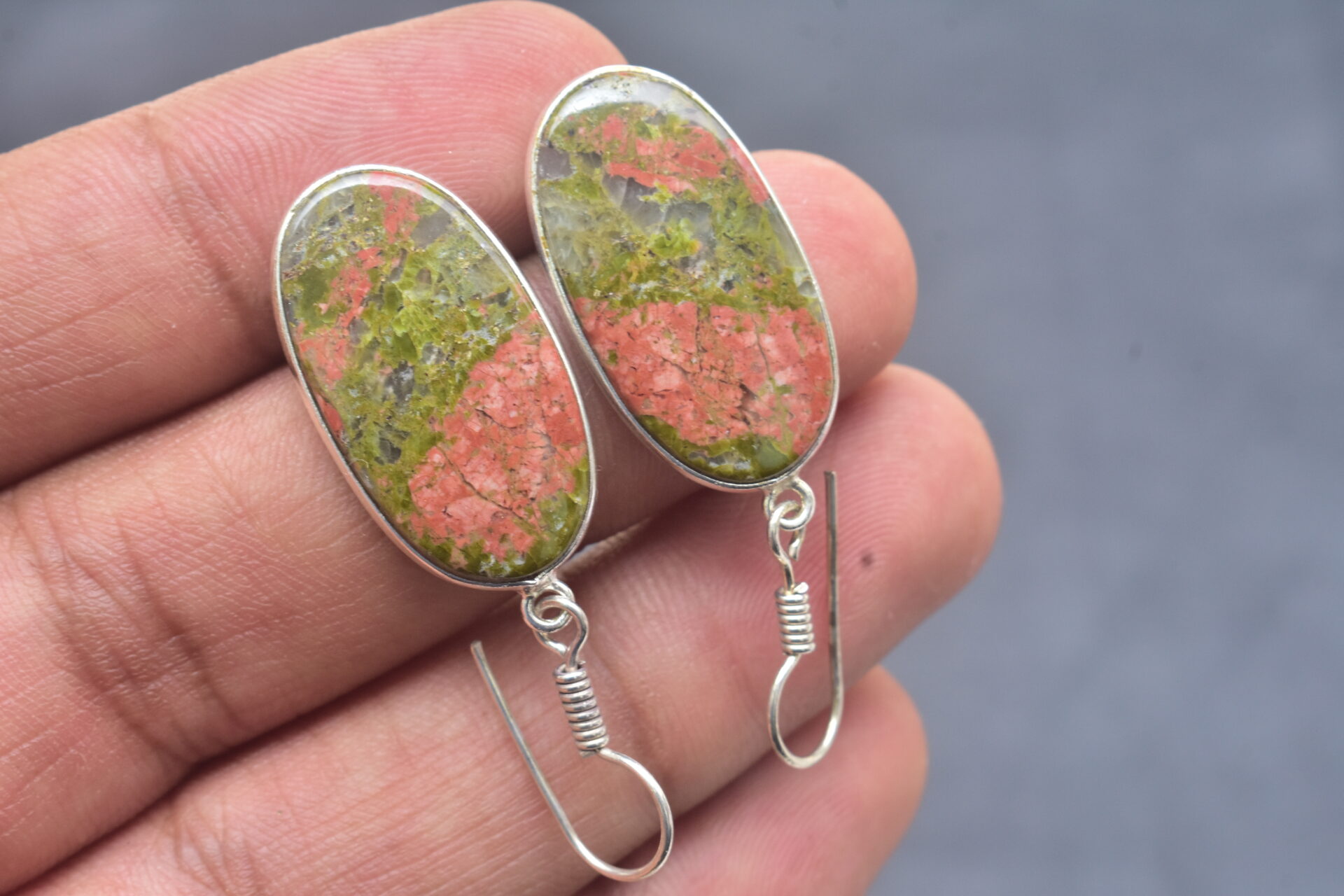 Unakite Cabochon / Plated Silver Earring / For Jewelry / Oval Shape / Loose Gemstone Jewelrys A-229